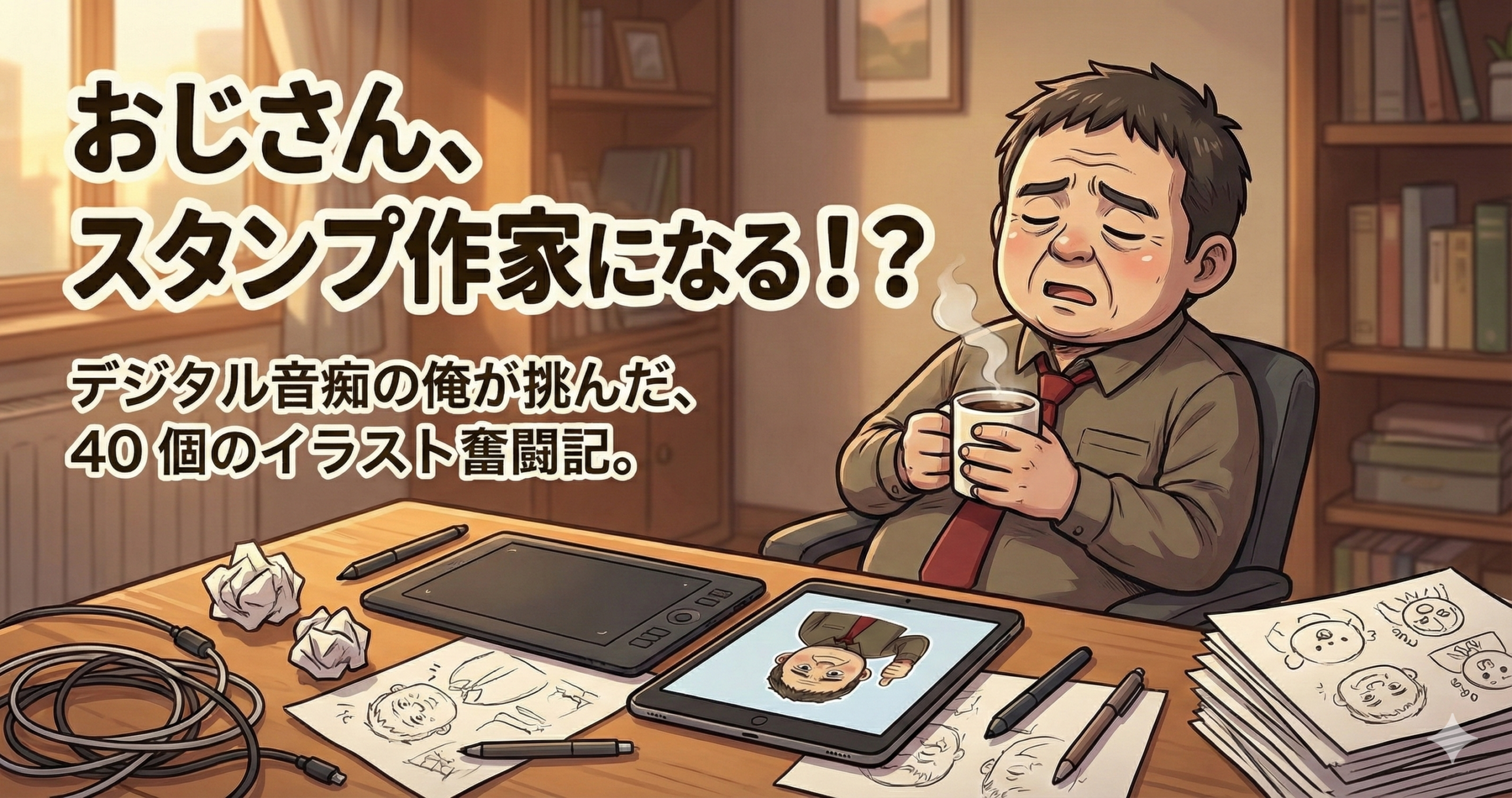 【AI挑戦2日目】完璧じゃなくていい。50代から始めるLINEスタンプ作りと、偶然生まれた「相棒」の話